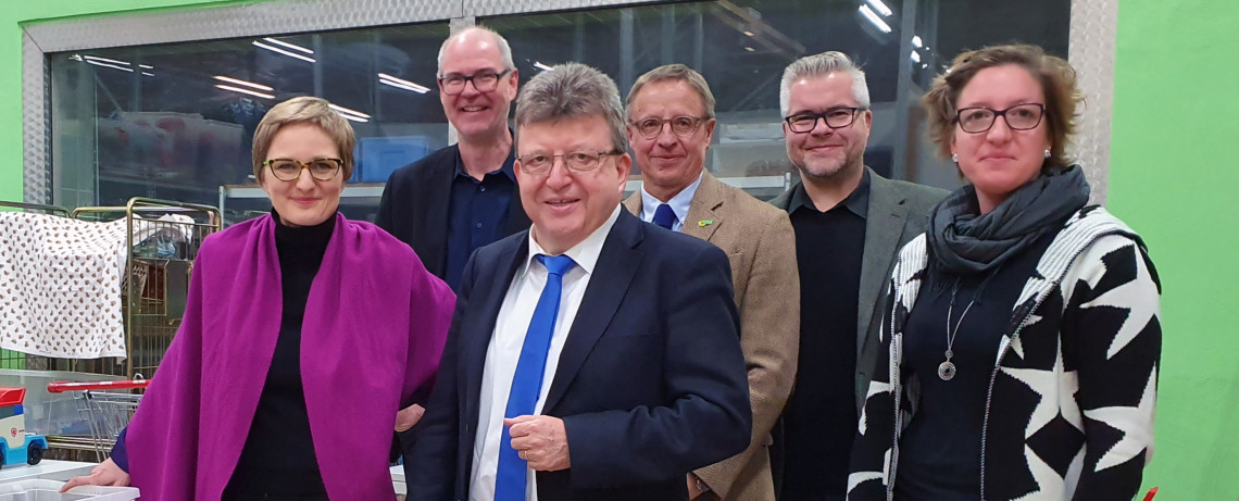 Geschäftsführer Reiner Knödler, der Leiter des Bildungsparks Holger Fuhrmann und sein Stellvertreter Peter Ande zeigten ihr das Secondhandkaufhaus in der Austraße. Das anschließende Gespräch drehte sich um "EHAP-ABINE", den europäischen Hilfsfond für am stärksten benachteiligte Personen, (EHAP) und das damit verbundene Projekt im Stadt- und Landkreis Heilbronn ABINE (Ansprache, Beratung und Information neuzugezogener EU-Bürger und wohnungslosen Menschen).