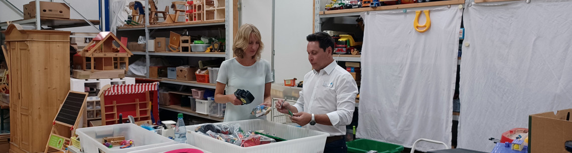 Isabell Huber informiert sich bei einem Besuch über die Aufgaben und die Arbeit des Secondhand-Kaufhauses der Aufbaugilde.
