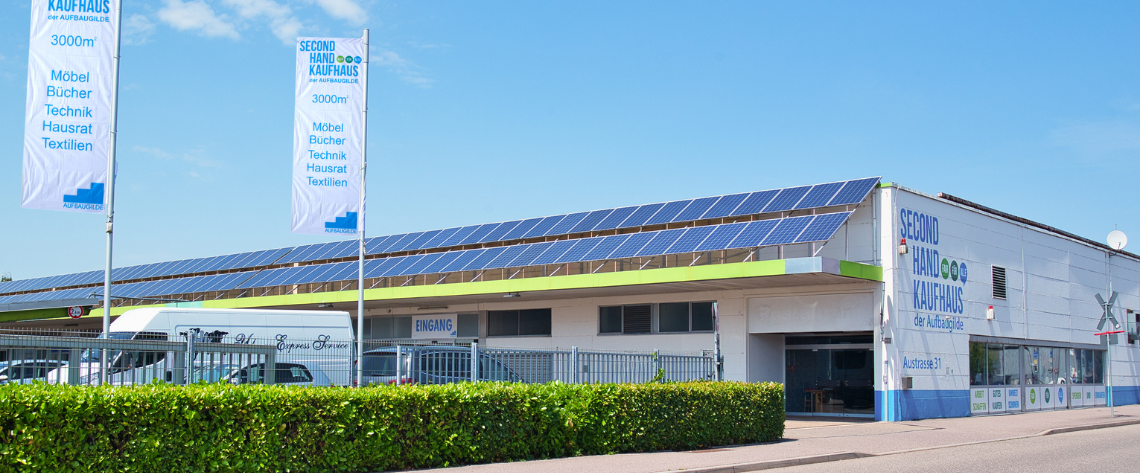 Einkäufe im Secondhand-Kaufhaus sind nicht nur günstig und umweltfreundlich, sondern sichern auch zahlreiche Arbeitsplätze. Als Beschäftigungsprojekt der Aufbaugilde hat das Secondhand-Kaufhaus zum Ziel, langzeitarbeitslosen Menschen den Wiedereinstieg in den Arbeitsmarkt zu ermöglichen. Die Mitarbeiterinnen und Mitarbeiter befinden sich bei der Aufbaugilde in einer zeitlich befristeten Beschäftigung und werden zugleich qualifiziert. Dies schafft Perspektiven und macht sinnvolle Beschäftigungen möglich. Jeder Einkauf und jede Spende tragen dazu bei, dass es dieses Angebot auch weiterhin gibt.