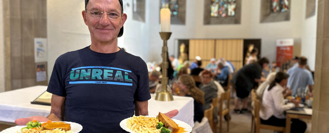 Bei unserer Erntedank-Andacht mit Diakoniepfarrerin Tatjana Gressert und einem anschließenden Mittagessen feierten wir kürzlich in der Nikolaikirche. Die Veranstaltung aus der Reihe Die Aufbaugilde geht in die Kirche zog wieder zahlreiche Besucherinnen und Besucher an, die von Elvira Dick am Klavier unterhalten wurden. In Zusammenarbeit mit dem Kreisdiakonieverband Heilbronn und der Nikolaigemeinde gab es ein kurzweiliges Programm, ein leckeres Mittagessen für alle Besucher*innen und viel Zeit für Gespräche.